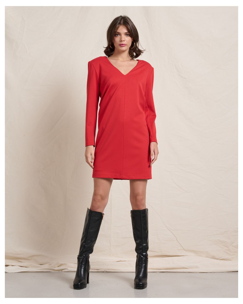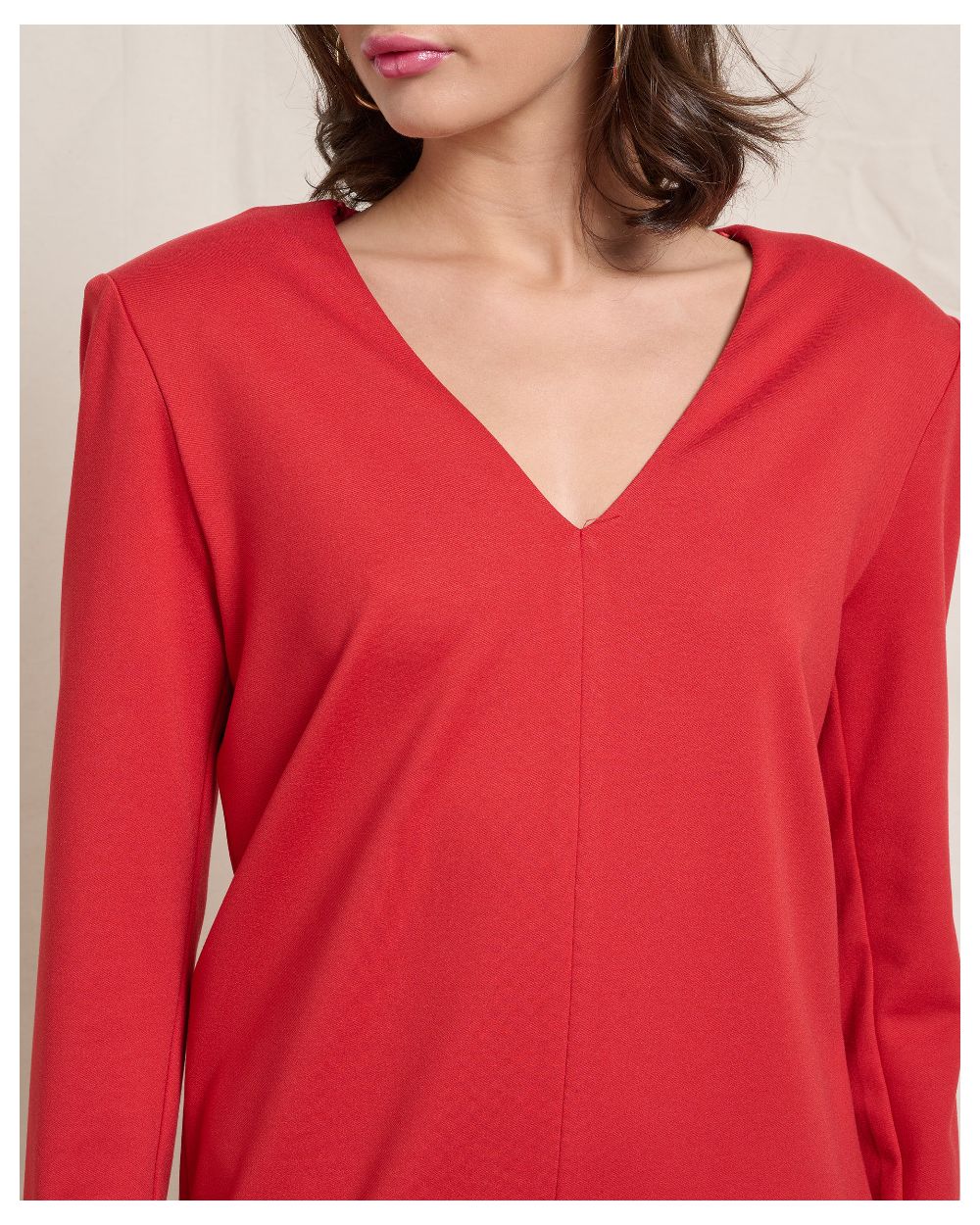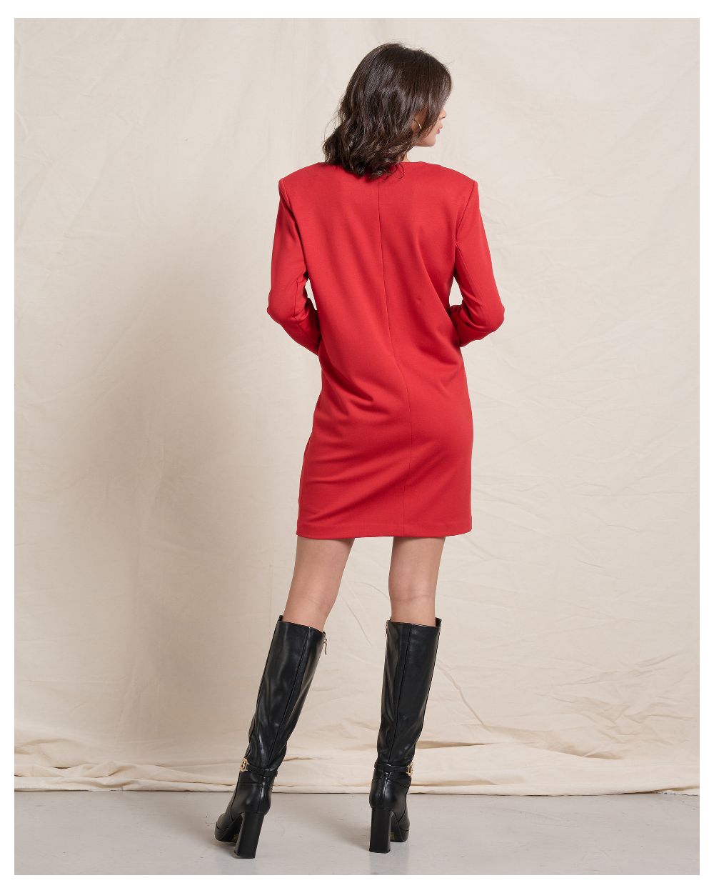 RED ELASTIC DRESS WITH SHOULDER PADS