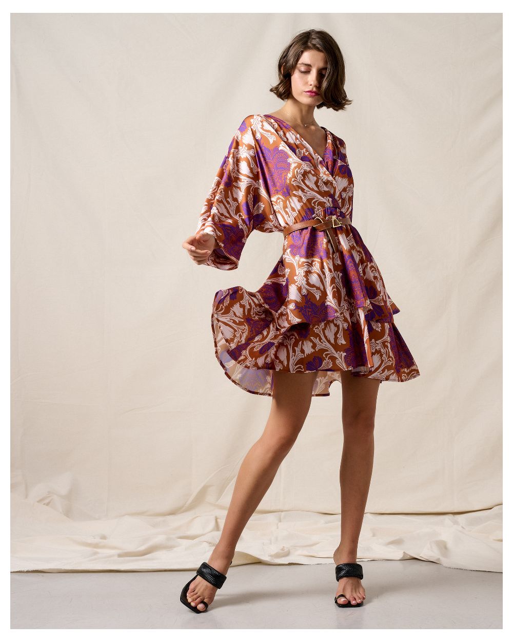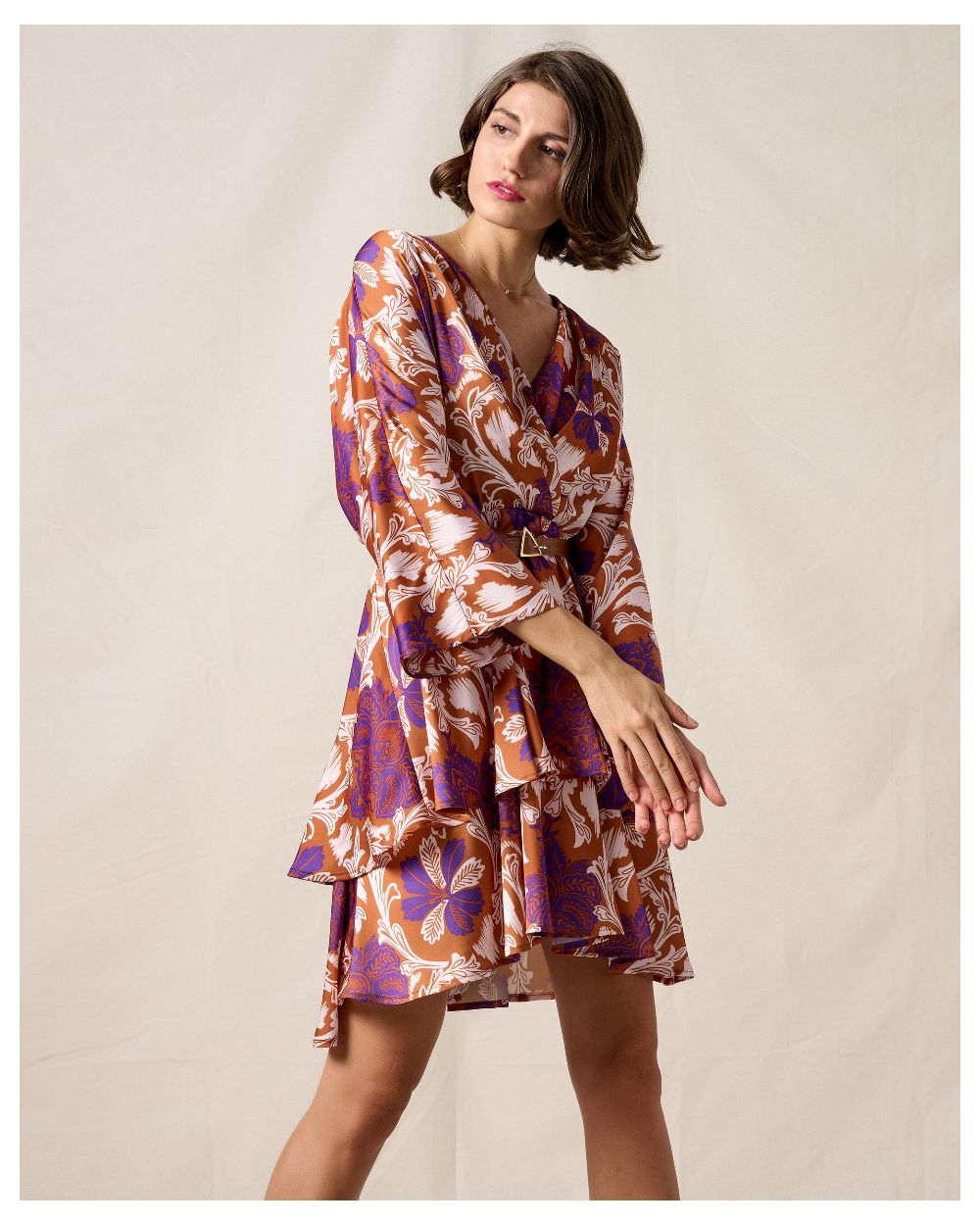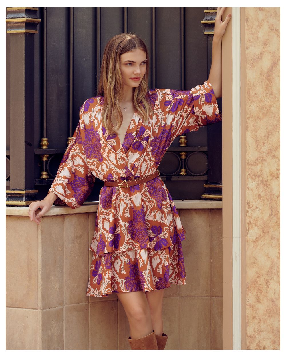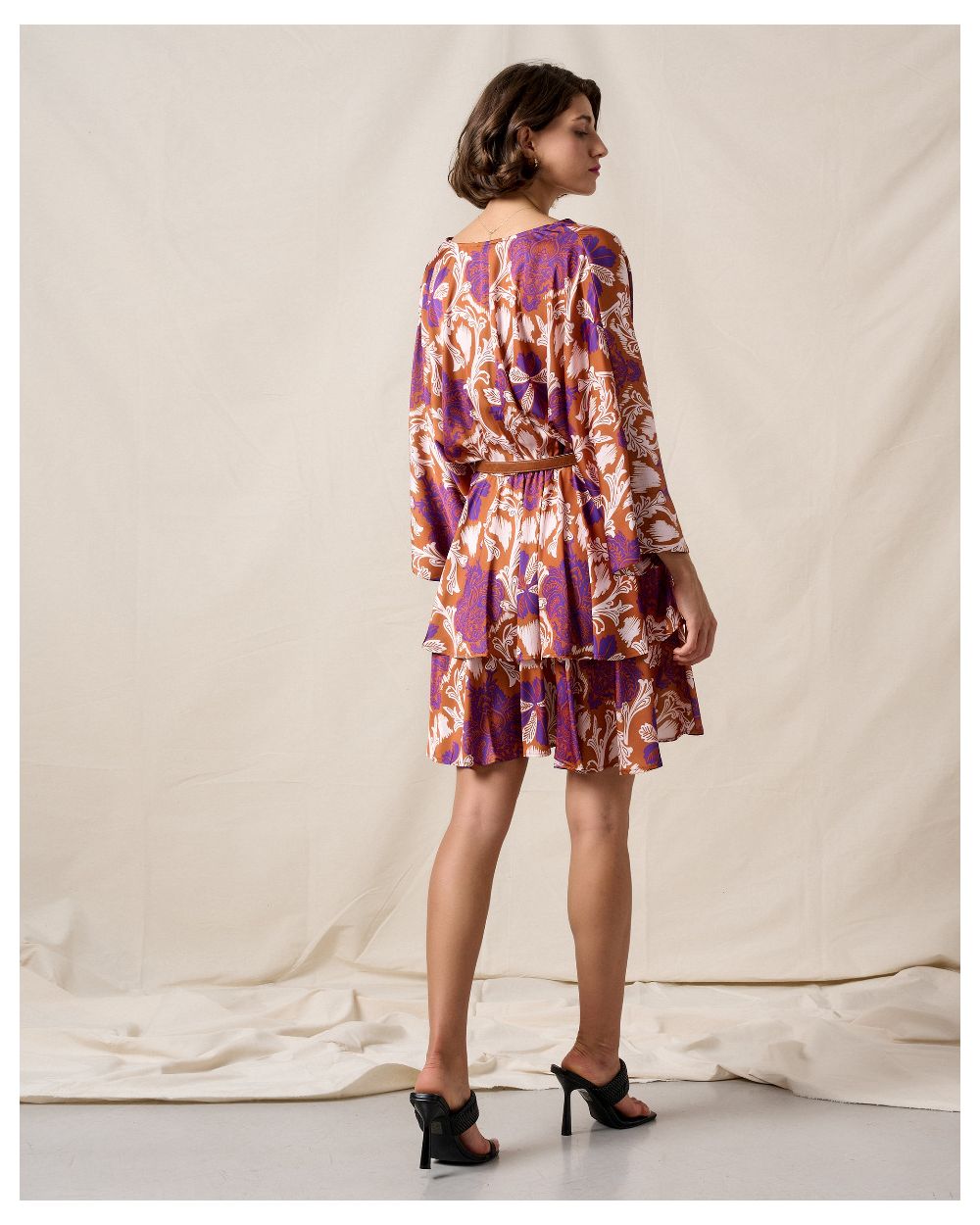 PATTERNED WRAP DRESS WITH ECO-LEATHER BELT