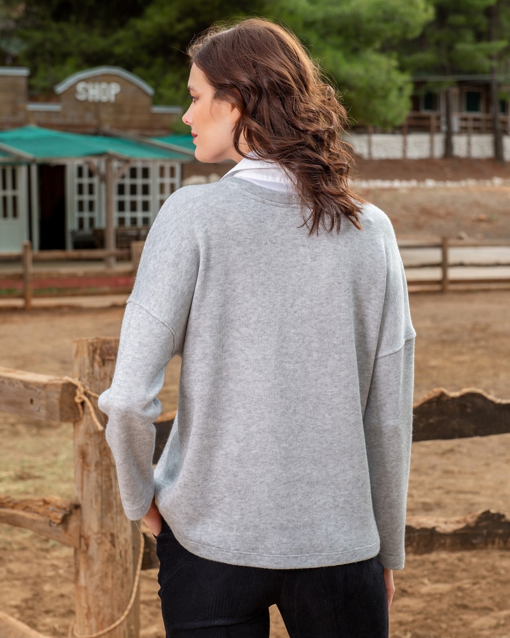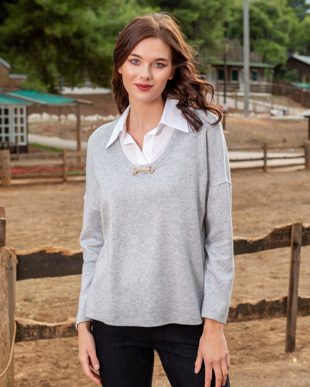 GREY BLOUSE WITH SHIRT ON THE NECK