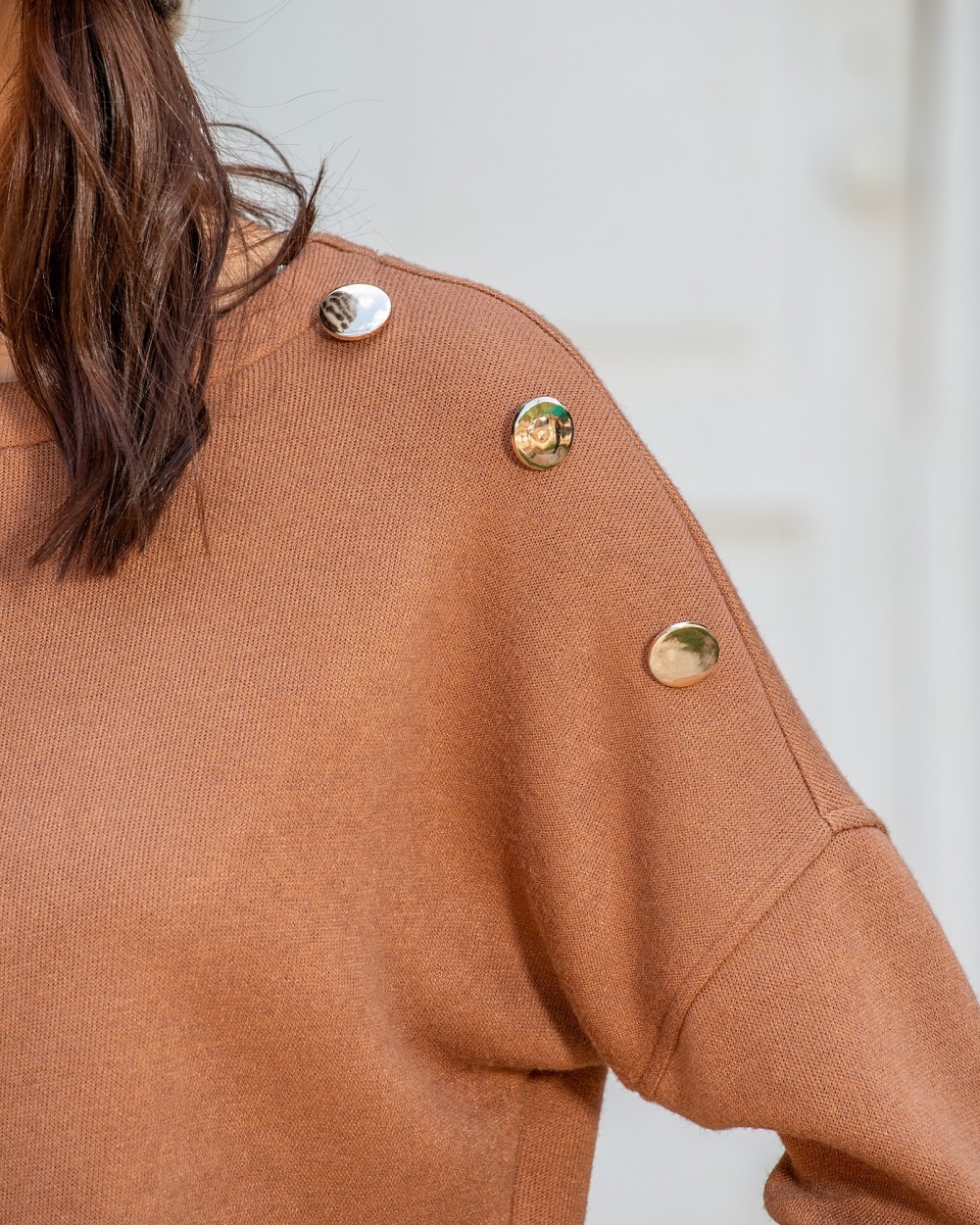 KNITTED I GOT YOU BLOUSE WITH DECORATIVE BUTTONS ON THE SHOULDER