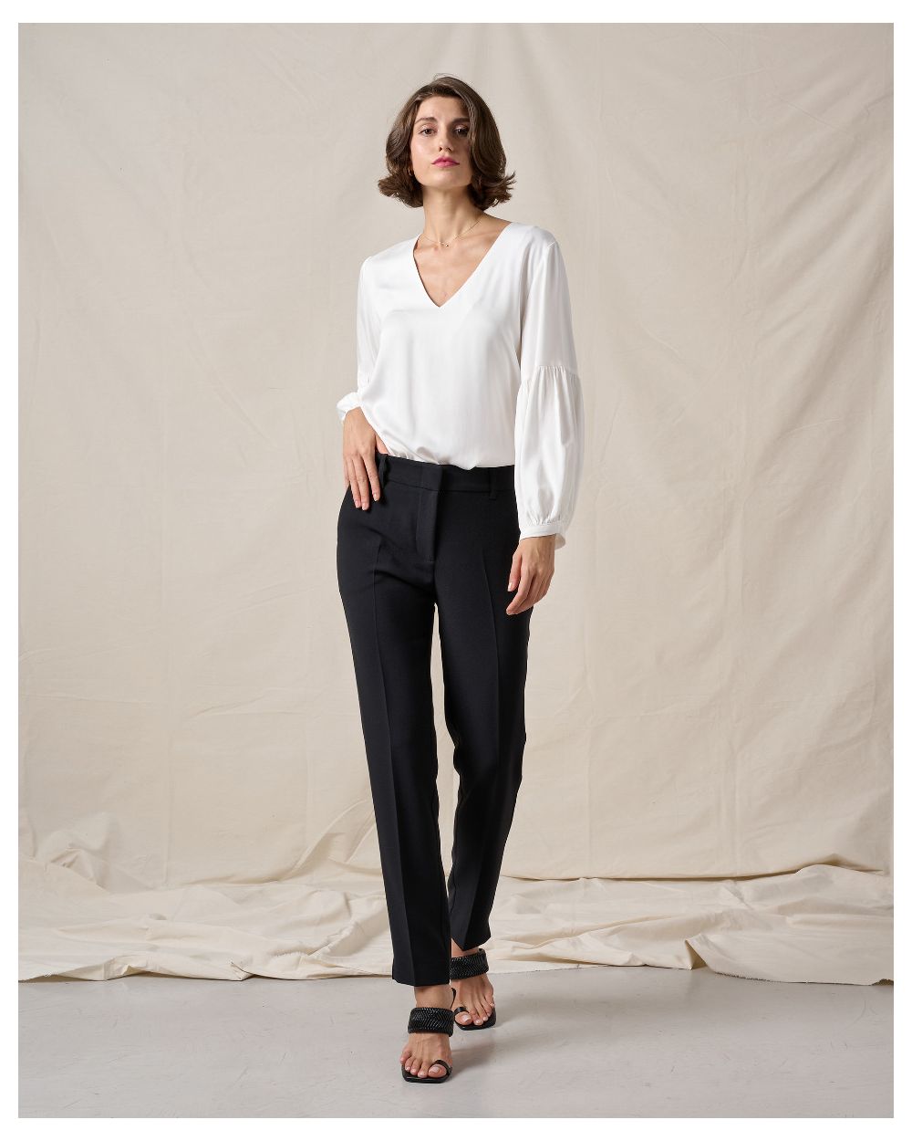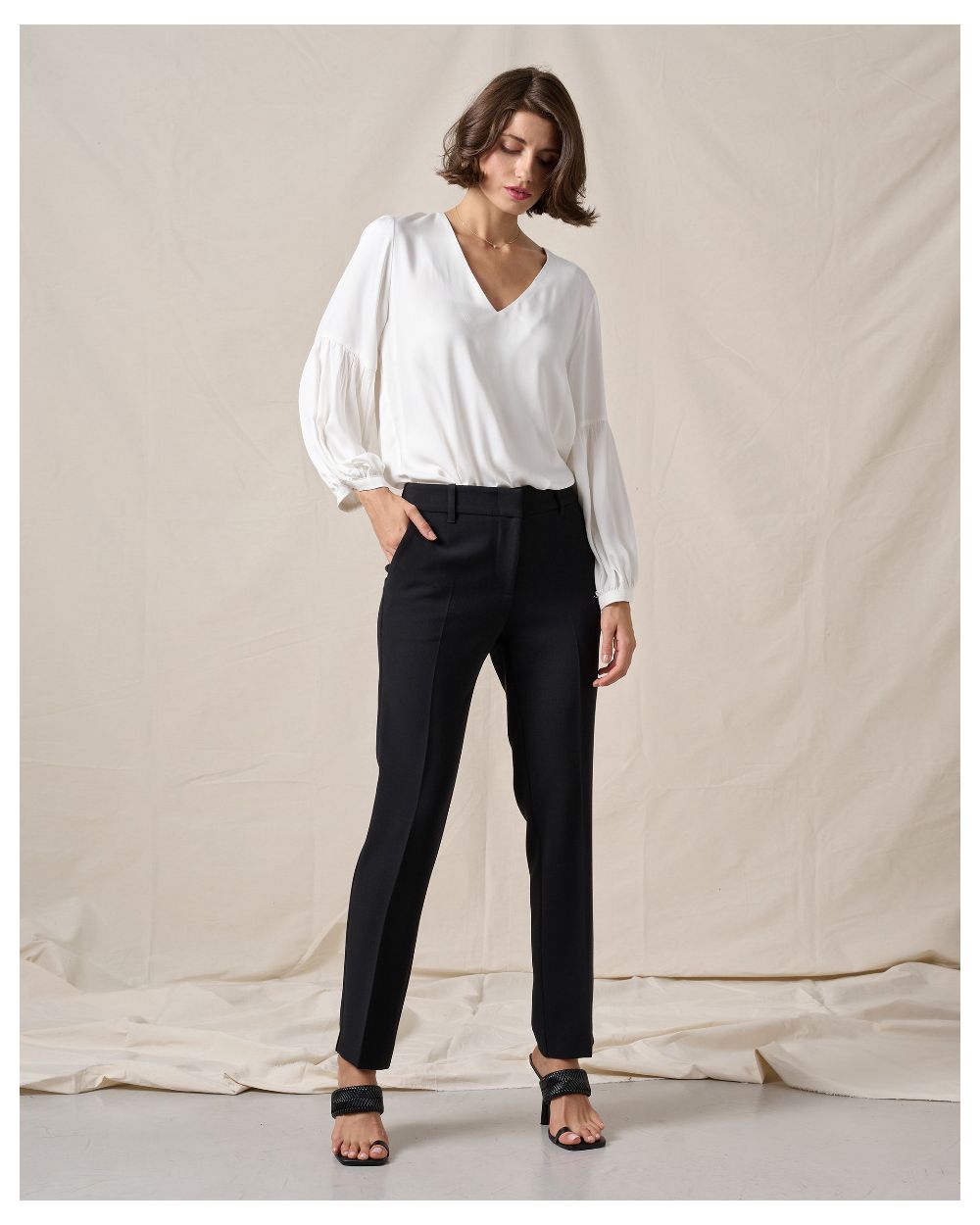 MONOCHROME CREPE CIGARETTE TROUSERS, REGULAR FIT